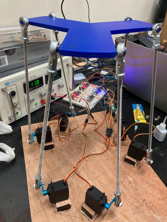 This project focuses on the design and fabrication of a Stewart platform and the implementation of certain motions using an Arduino UNO. GitHub Repo