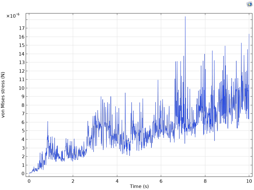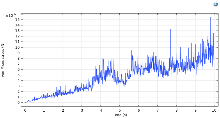 Graph3. Von Mises Stress on the bottom surface of cuboidal canister vs. Time