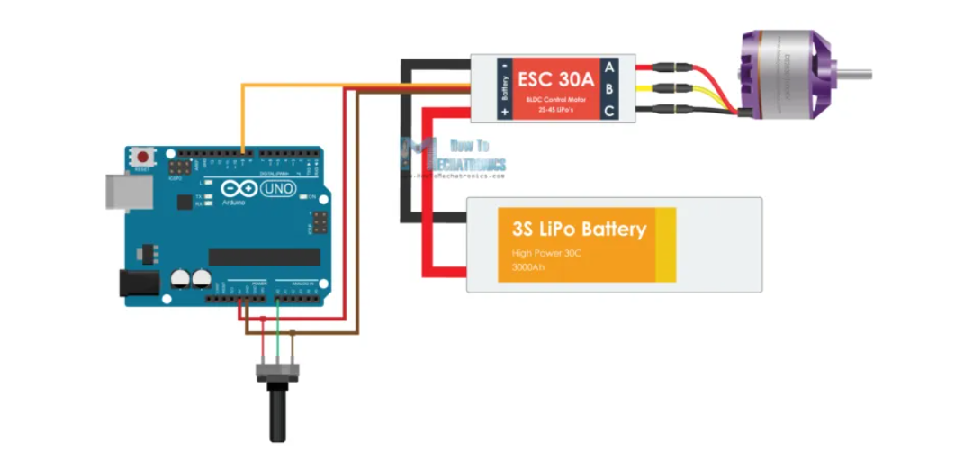 An ESC (Electronic Speed Controller) is a device that is used to control and adjust the speed of BLDC motors. It is used in conjunction with the BLDC motors for various applications like in drones, etc. Therefore, the required specifications of the ESC we need to use are highly dependent on the BLDC motor we choose for our job.