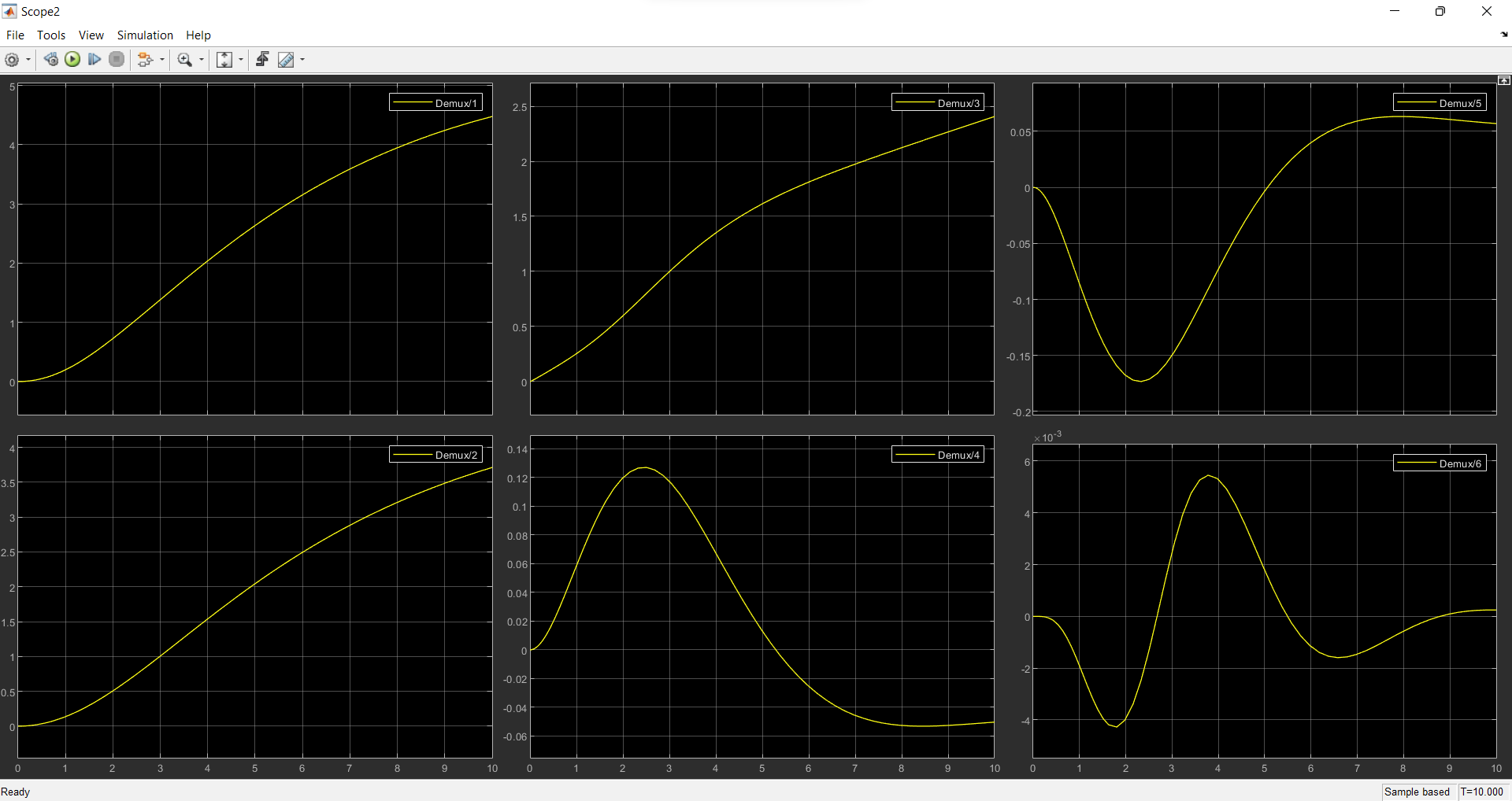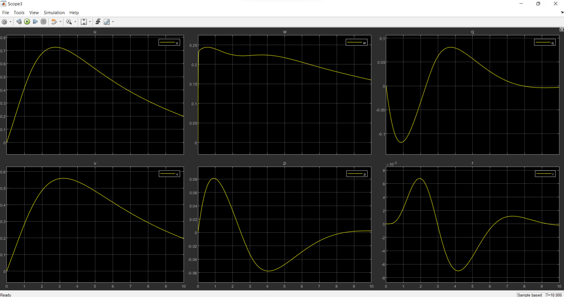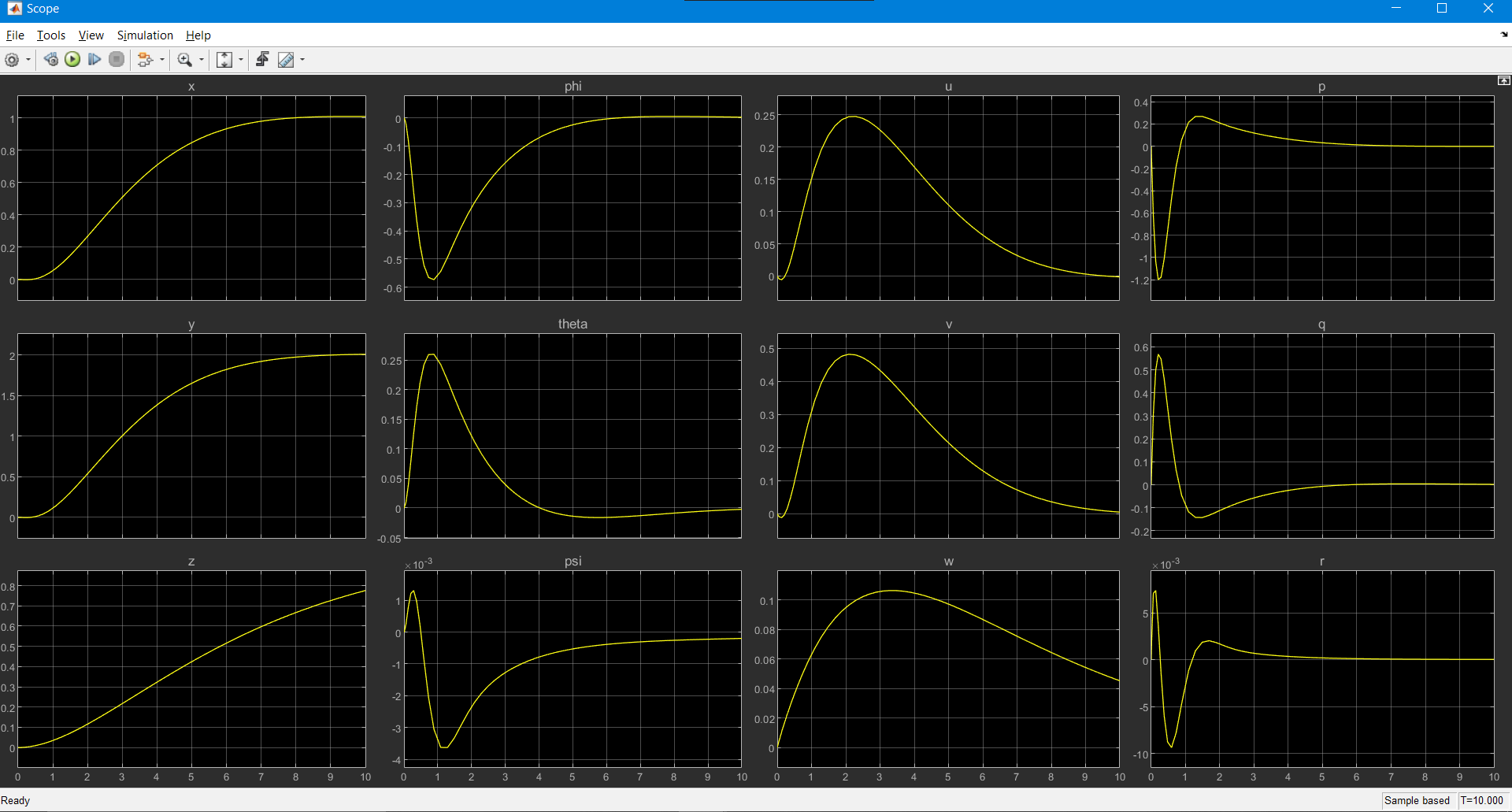 Results that we obtained: x, y, z: Linear positions in world frame phi, theta, psi: Angular positions in world frame u, v, w: linear velocities in body frame p, q, r: angular velocities in body frame