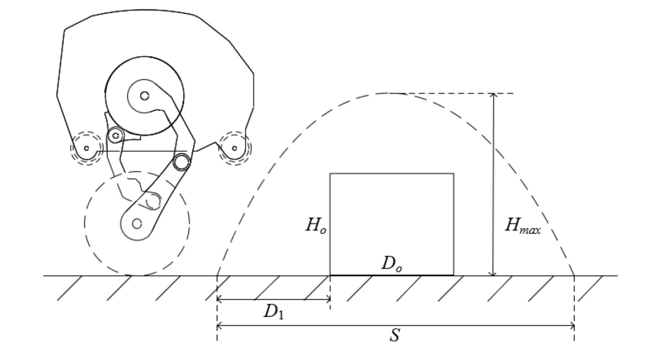 S is taken as 0.2 m. This is used to estimate the horizontal velocity of the robot throughout the projectile.