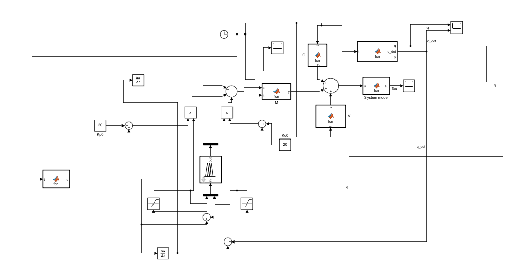We built this system to control the q, q_dot while takeoff where q is the hip joint angle. But due to certain issues like the number of rules and membership functions of the fuzzy controller and due to the lack of proper reference trajectory equations, we could not get proper results for the torque and the control variables: