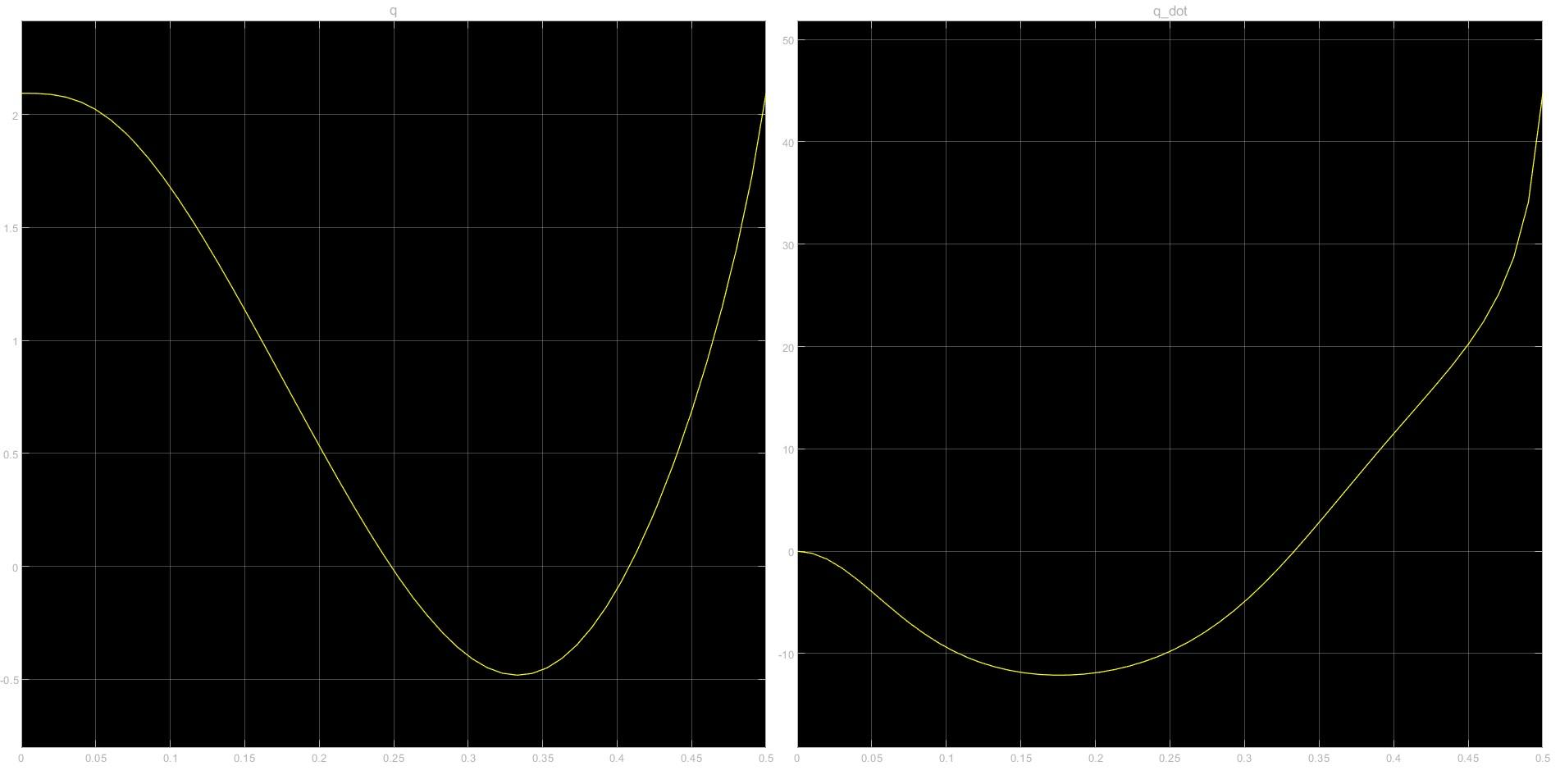 These are the plots for the q and q_dot. The parabolic projectile reference is taken into consideration.