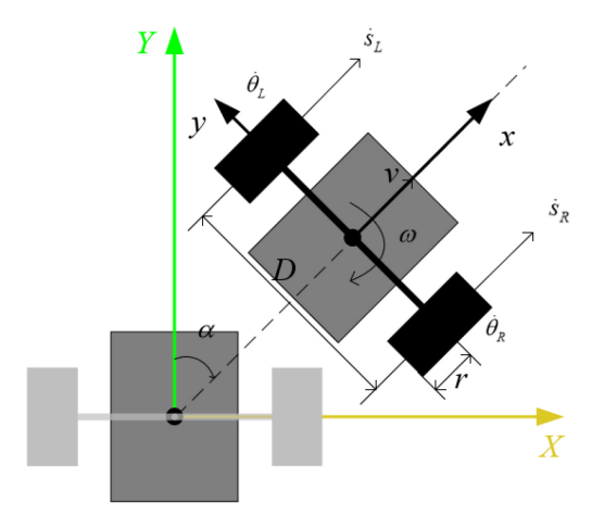 As coordinate {3} represents the motor’s position and {0} represents the wheel position, so, the length of the robot can be found by using the [0T3] matrix. (Assuming that center of mass of the robot lies near motor)