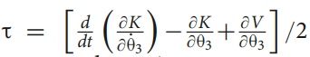 Next, we derived the equation of torque in terms of theta3, theta3_dot and theta3_ddot where theta3 is the hip joint angle.